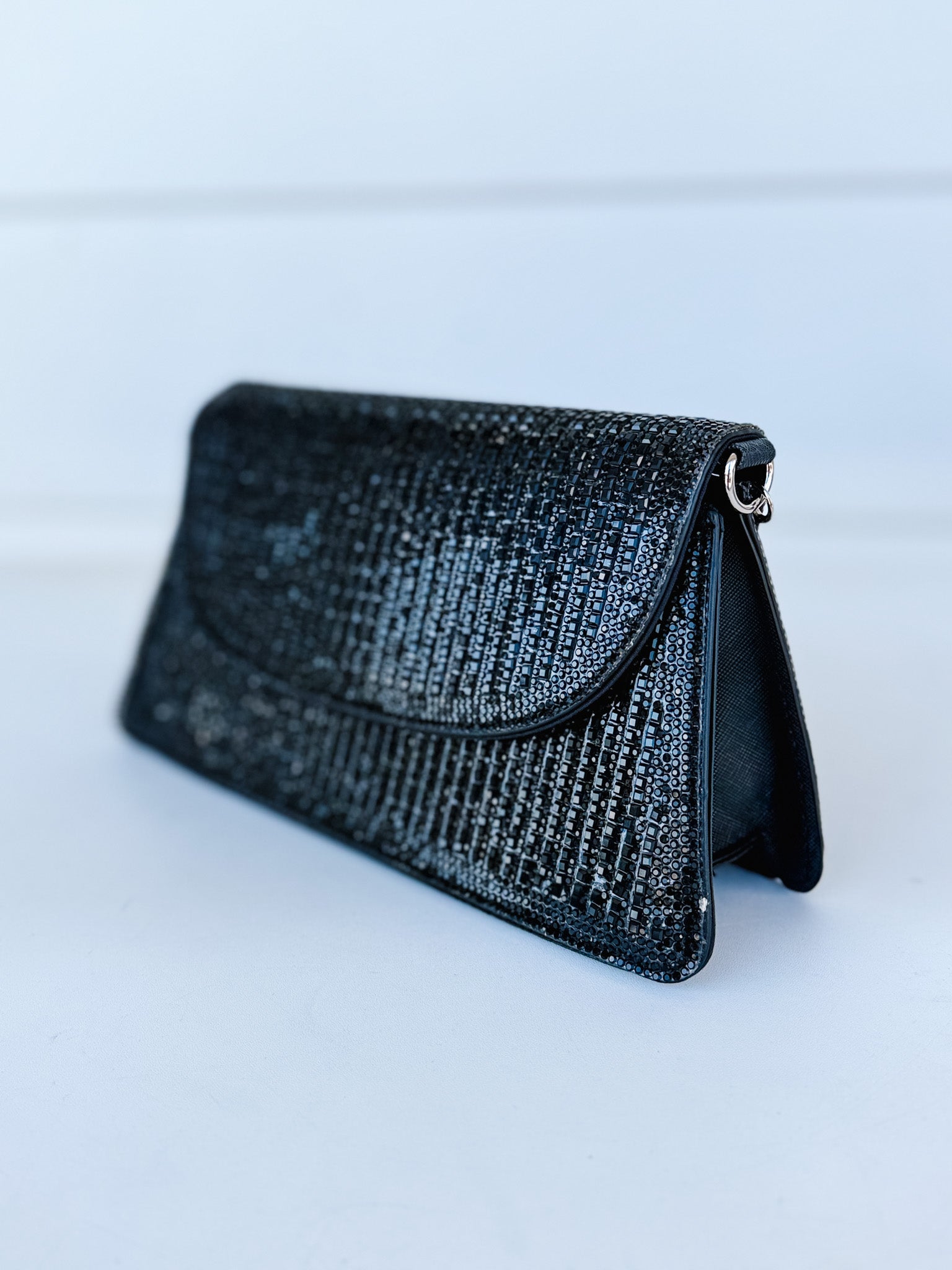 Sparkle meets sophistication with this rhinestone mini bag. Designed with a sleek boxy silhouette, it features a shimmering rhinestone exterior, a detachable strap chain for versatile styling, and just the right size to fit your evening essentials. Measuring 9" wide by 6" tall, it’s the perfect statement accessory for nights out, weddings, and special occasions.