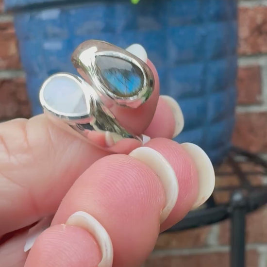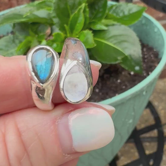 Indulge in the exquisite beauty of our Rainbow Labradorite rings. With gorgeous white moonstone and labradorite stones, these adjustable rings will add a touch of luxury to any outfit. Each ring is set on a sterling silver band, ensuring both elegance and durability. Elevate your style with our premium rings.