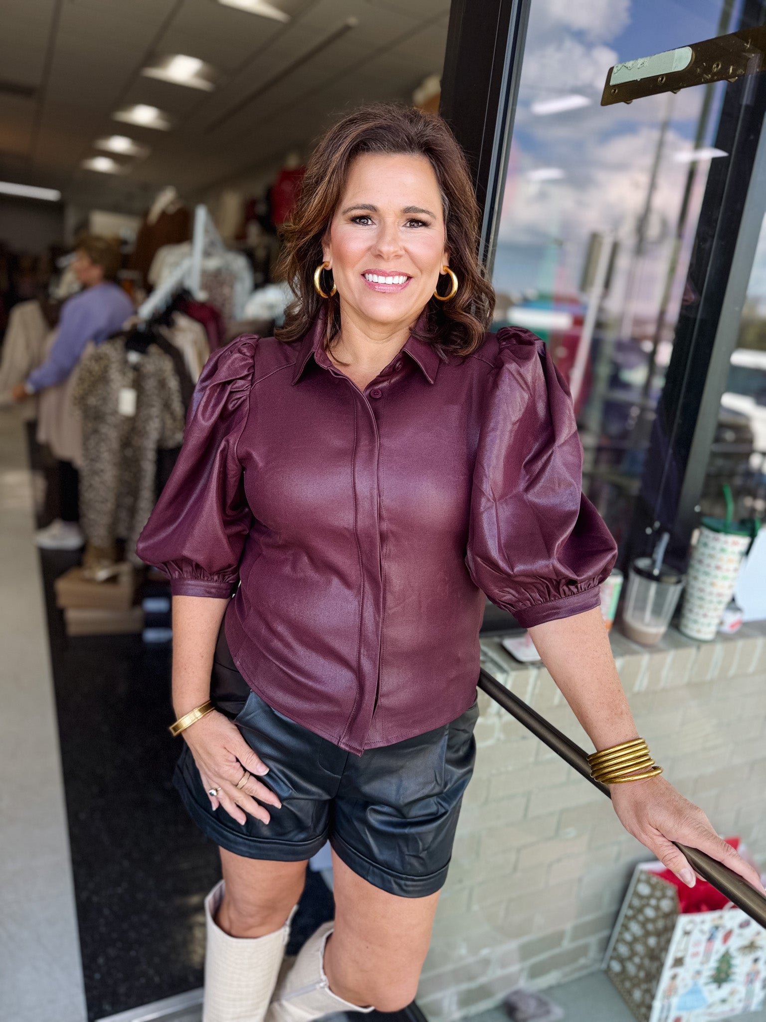 Featuring a collared neckline, puff sleeves, and a button-down front, it’s the perfect staple for styling from workdays to weekends. Tuck it into trousers or denim for a polished look, or layer it under a knit vest or blazer for an elevated seasonal ensemble.