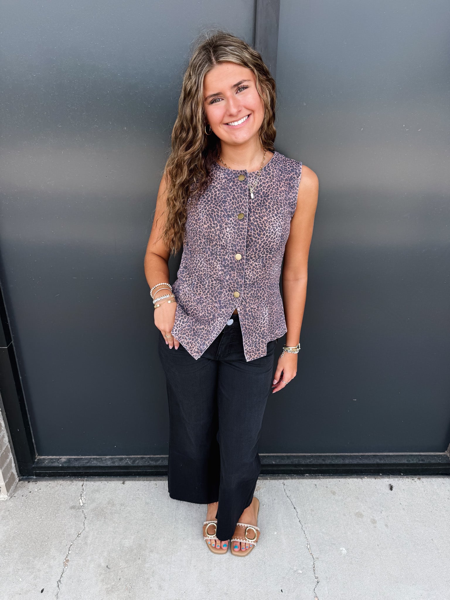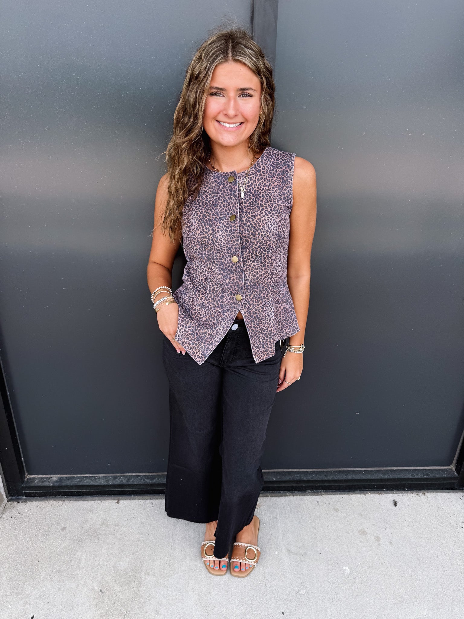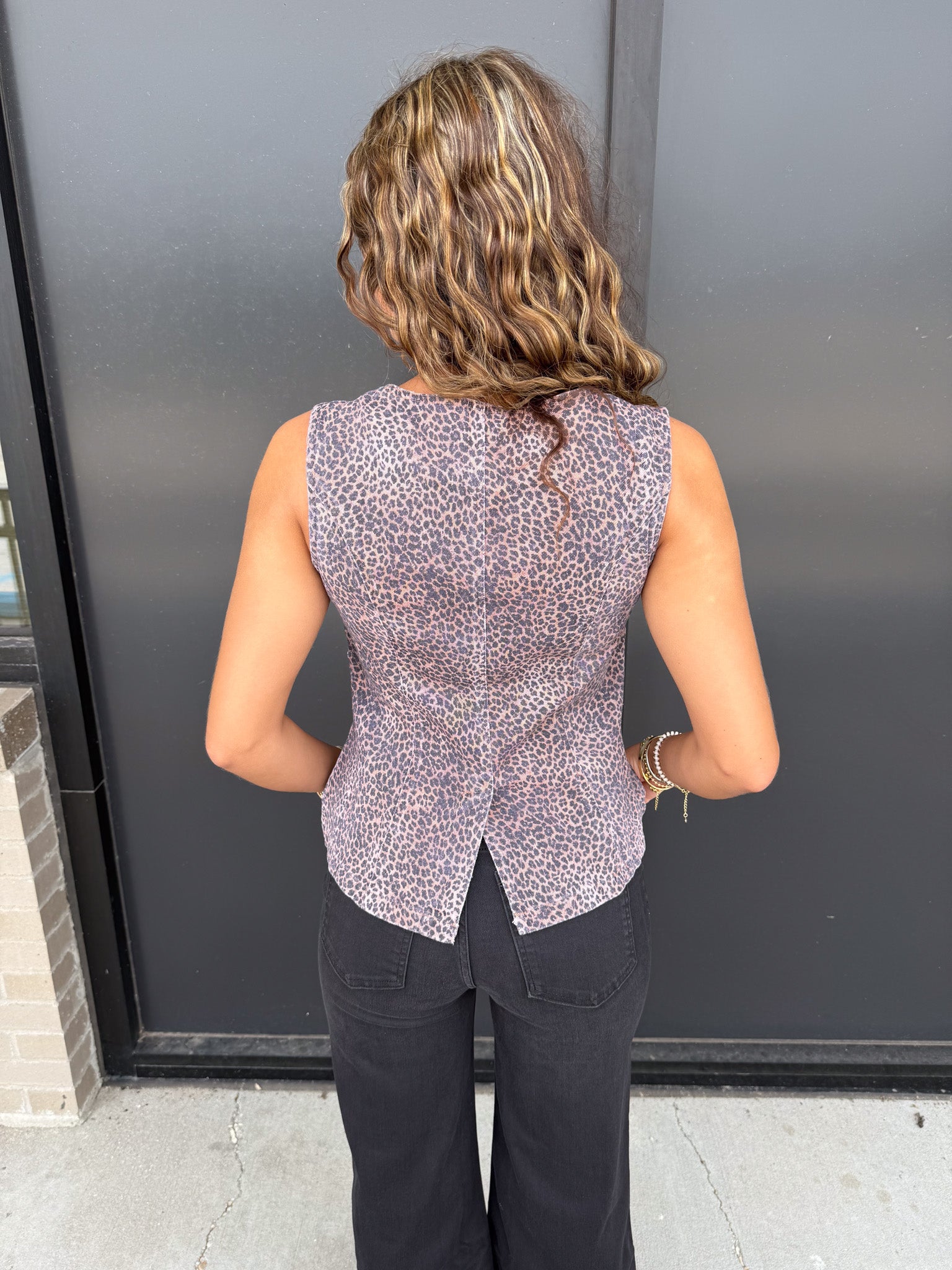 Step out in style with the SS Journey Vest, featuring a bold animal print that adds a wild twist to your outfit. This blazer-style vest brings a playful edge to any look, perfect for layering and turning heads wherever you go. Embrace your adventurous side with this chic and versatile piece!