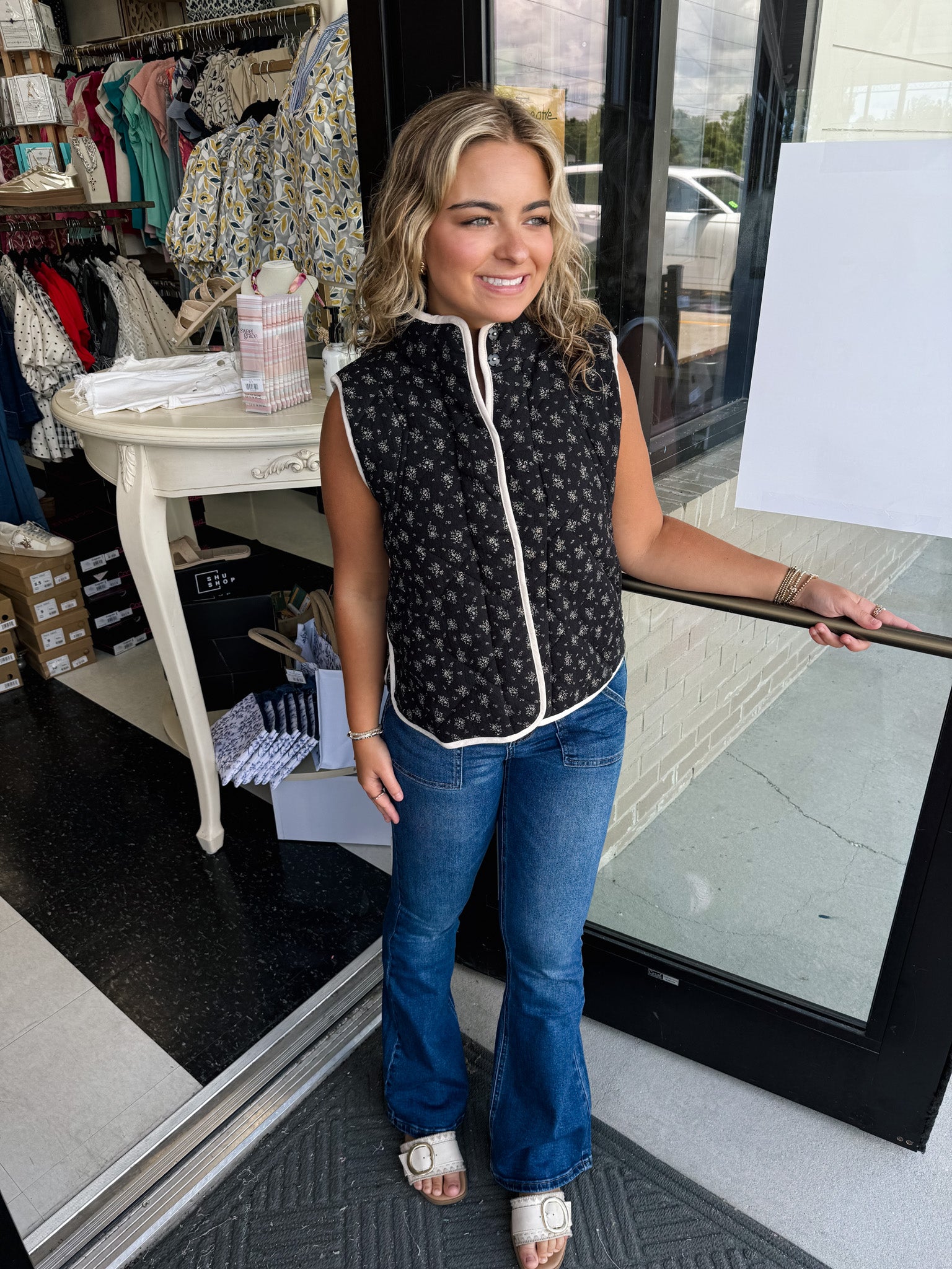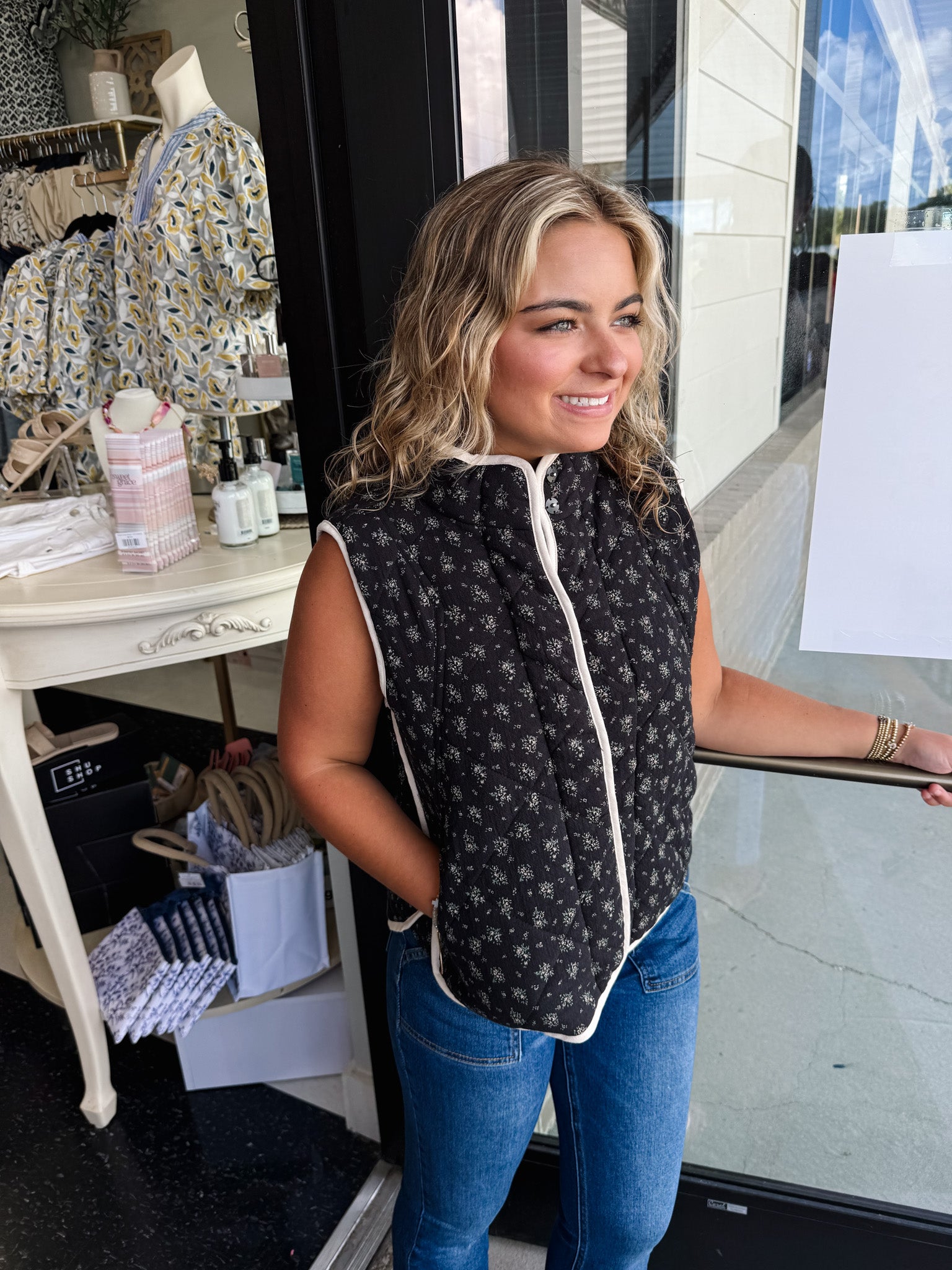 Add a splash of fun to your outfit with the SS Paisley Vest! This floral print quilted vest features charming contrast binding and handy pockets, perfect for keeping your essentials close. Lightweight yet cozy, it’s an easy way to brighten up any look while staying comfy on