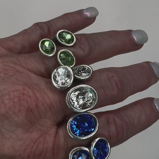 Experience the ultimate in luxury with our sterling silver 3 stone adjustable rings. Crafted with stunning precision and featuring a timeless design, these rings add a touch of elegance to any outfit. The adjustable fit ensures comfort and style for any occasion. Elevate your look and indulge in the finer things with these gorgeous rings.