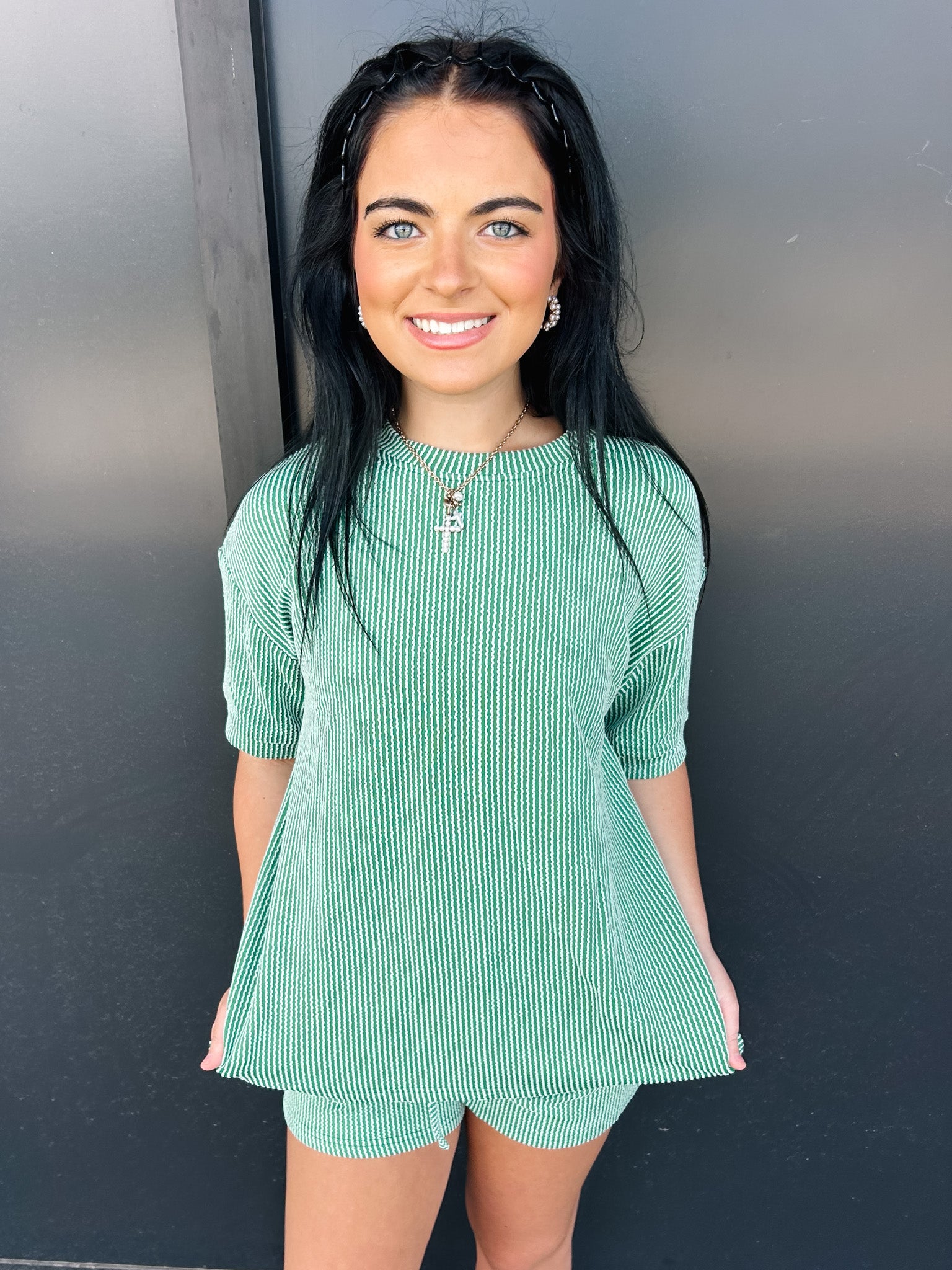 Slip into pure comfort with our playful TD This Is The One Set! This adorable round-neck half sleeve top paired with drawstring shorts creates the perfect loungewear duo. Soft fabric hugs in all the right places while the relaxed fit keeps you feeling breezy and carefree. Your new go-to outfit for lazy Sundays or casual hangouts!