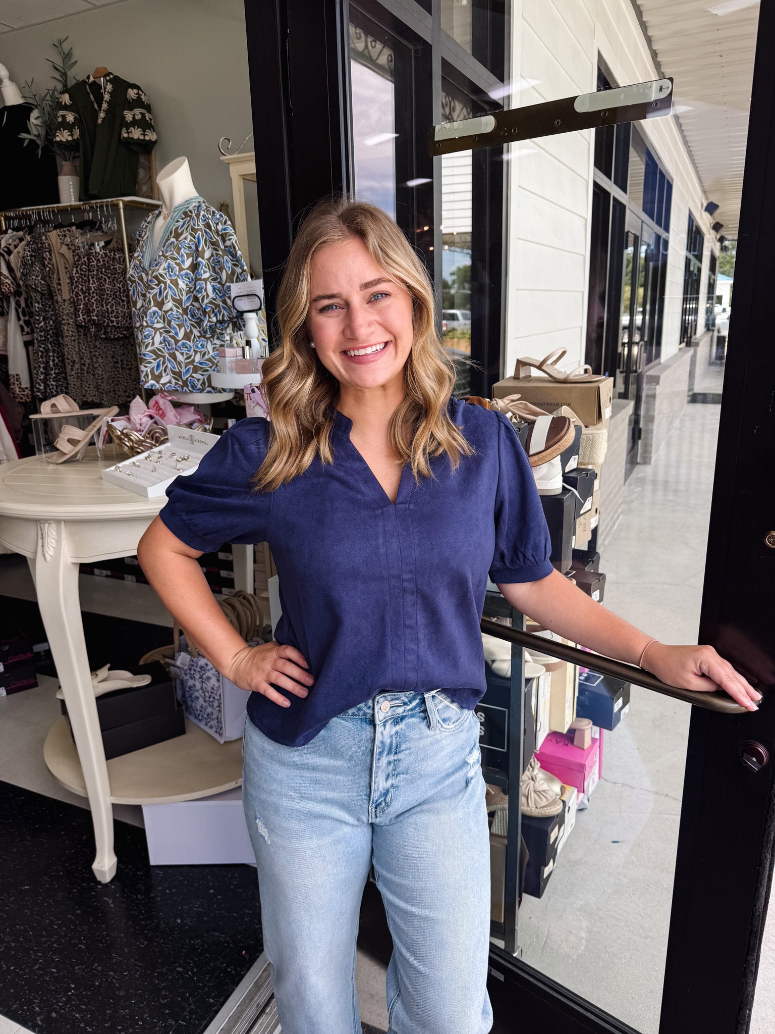 Elevate your wardrobe with the THML For the Record Top, featuring a refined short sleeve design crafted from soft suede. This piece offers a sophisticated texture and a flattering silhouette, perfect for polished, everyday elegance.