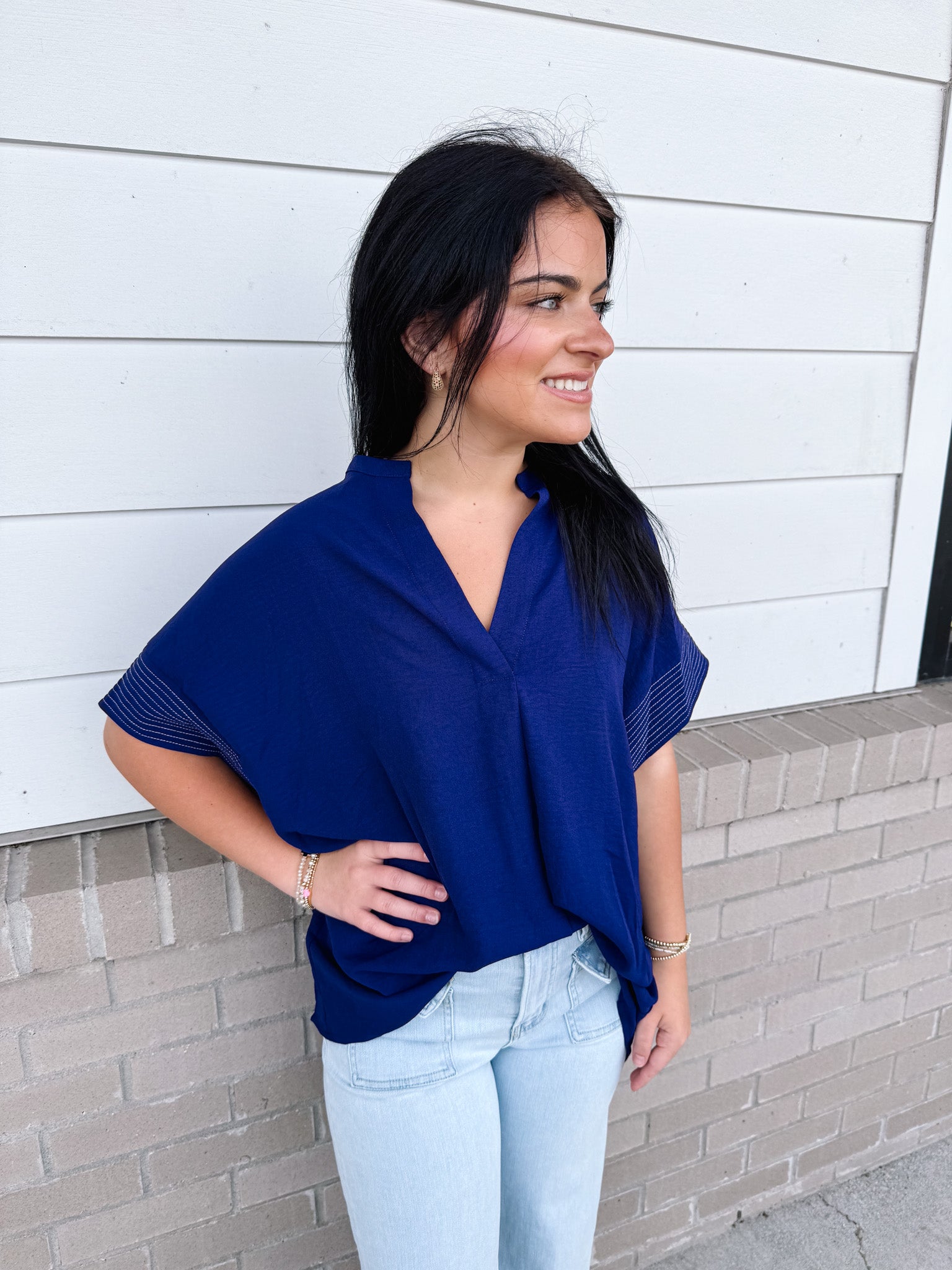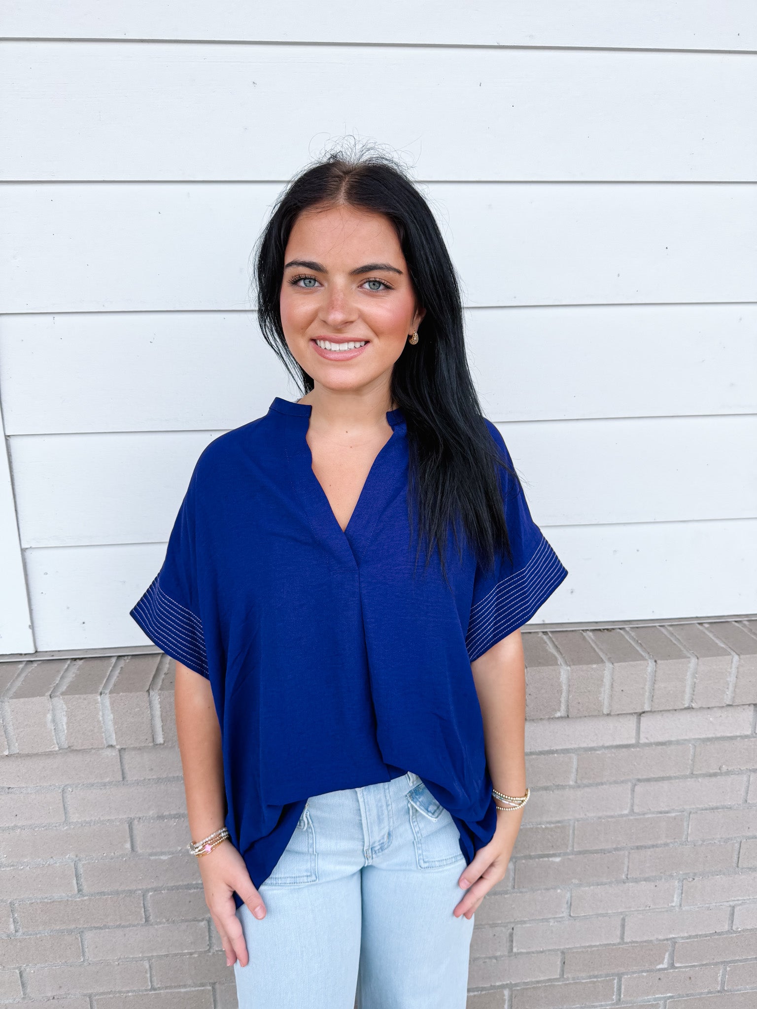 Indulge in luxury with the UG Frankie Top. This relaxed top boasts an oversized silhouette and wide short sleeves for a sophisticated yet effortless look. The split neckline with soft pleat detailing and contrast stitching add an elegant touch. Lightweight and unlined, it's perfect for any occasion.