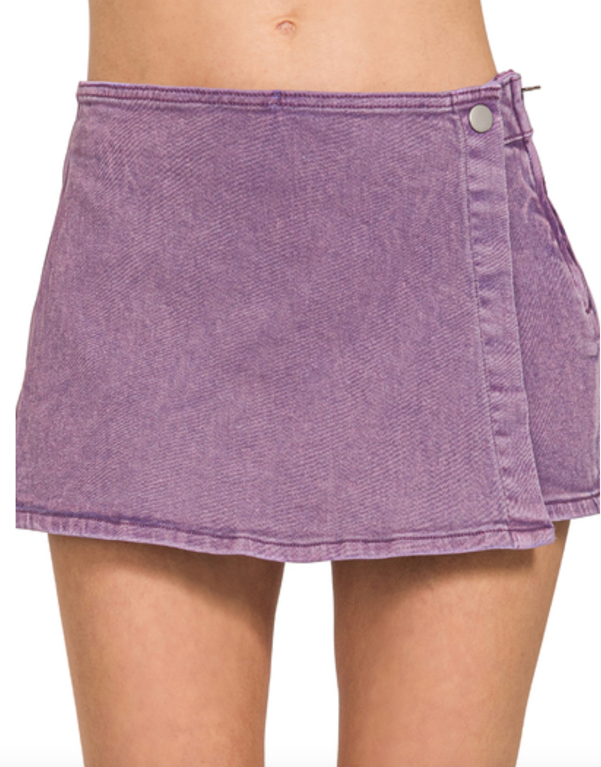 Indulge in the ultimate in comfort and style with our Zen Washed Skort. This unique piece combines the classic look of denim with the functionality of a skort, making it the perfect choice for any occasion. The stretch fabric ensures a comfortable fit, while the washed denim adds a touch of luxury to your wardrobe. Elevate your style game with our exclusive skort.