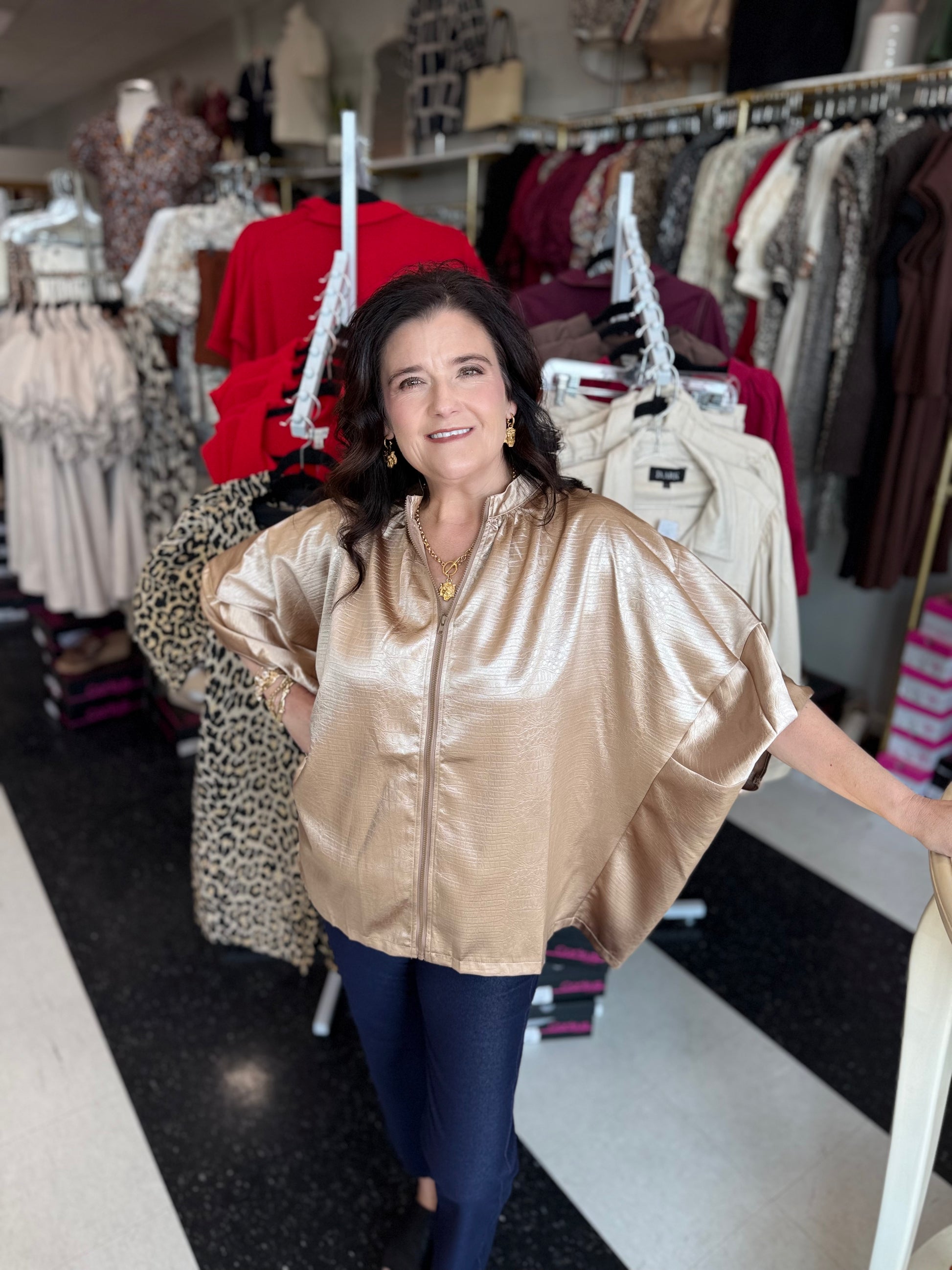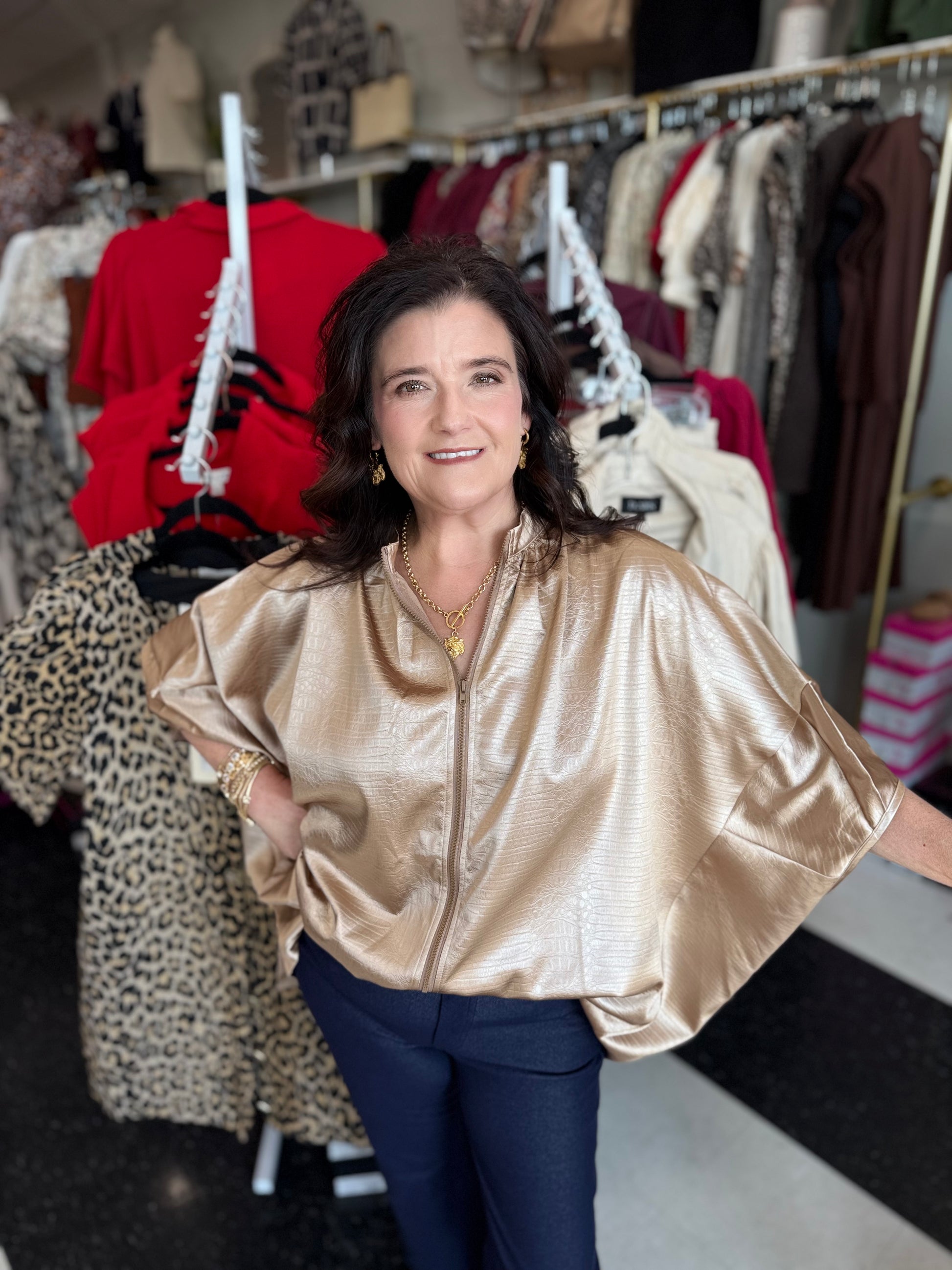 Indulge in understated luxury with the Zendaya Zip Top. Designed with a sleek front zipper and flattering dolman fit, this top offers the perfect balance of elegance and contemporary style. Whether you’re dressing for a day at the office or an evening out, this versatile piece makes a lasting impression.